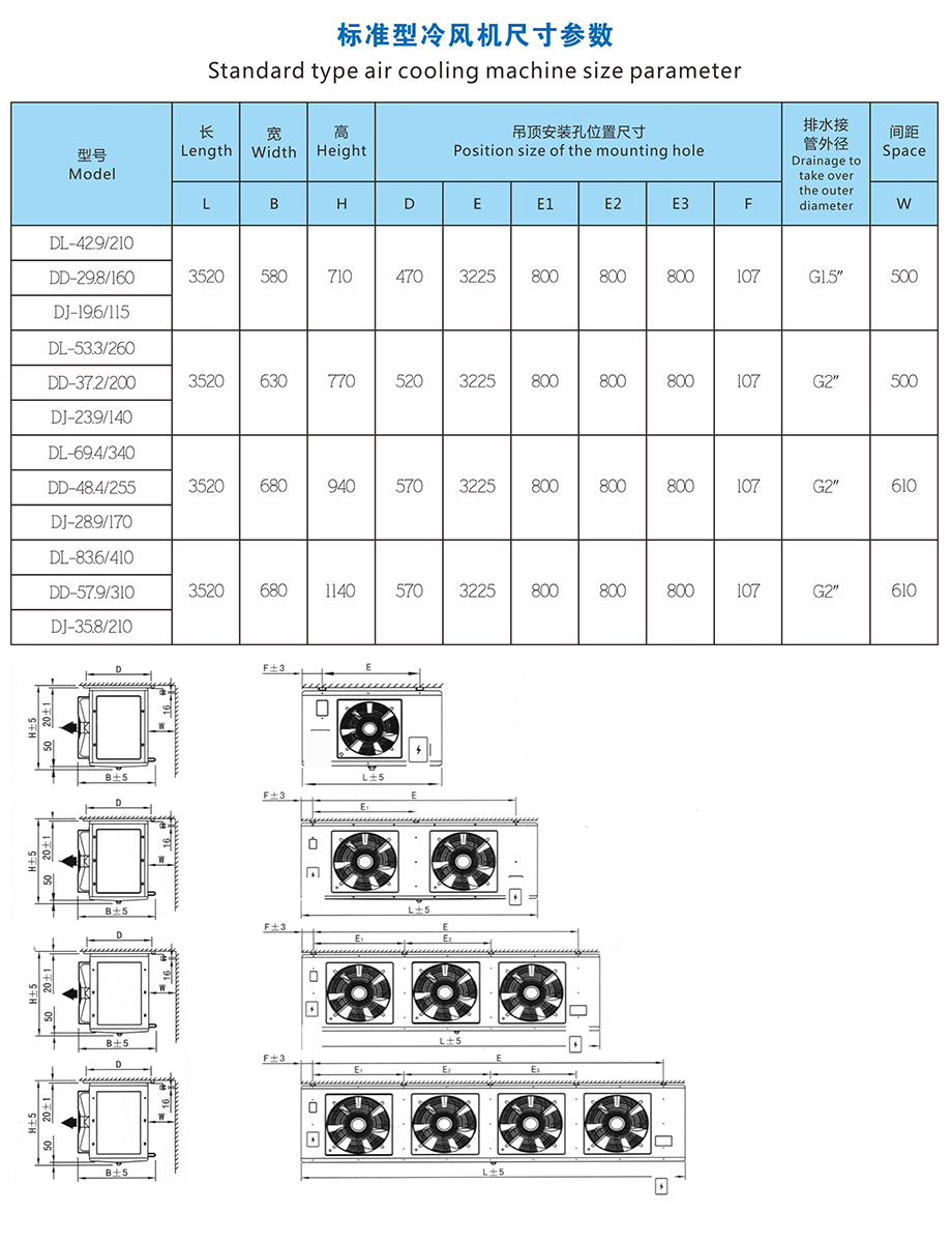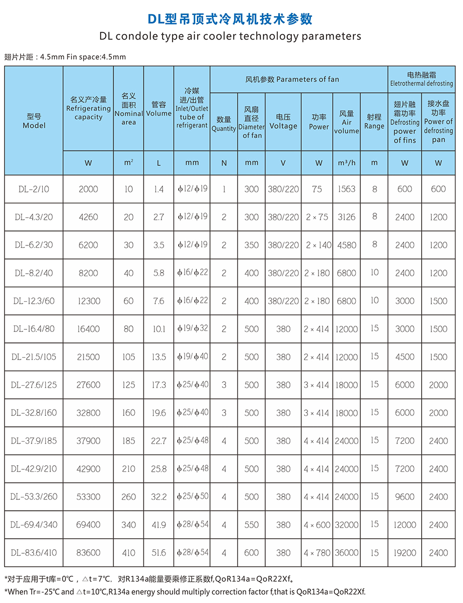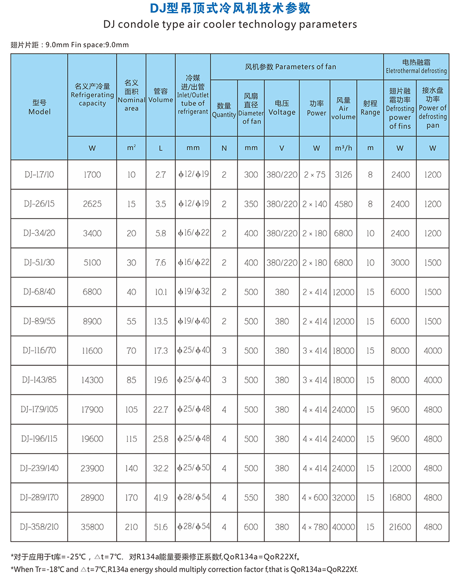 DD type gir cooler is moinly applied to the refrigerator of -18 C. DJ type cooling fon is mainly applied