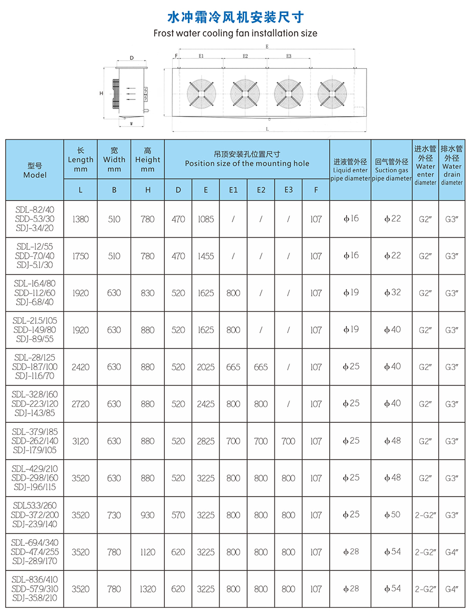 可分为SDL、SDD. SDJ三个系列,分别适用于0°C、-18°C及-25°C左右的冷库使用。
