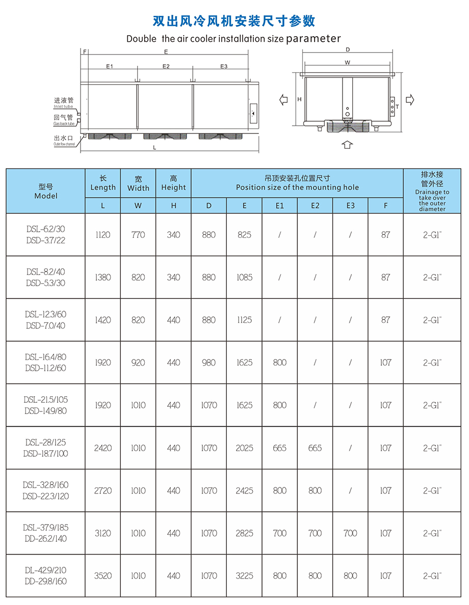 Dual discharge air cooler is a complete library and cooling equipment suitable for food handling and processing room from both sides out of the wind, blowing soft, suitable