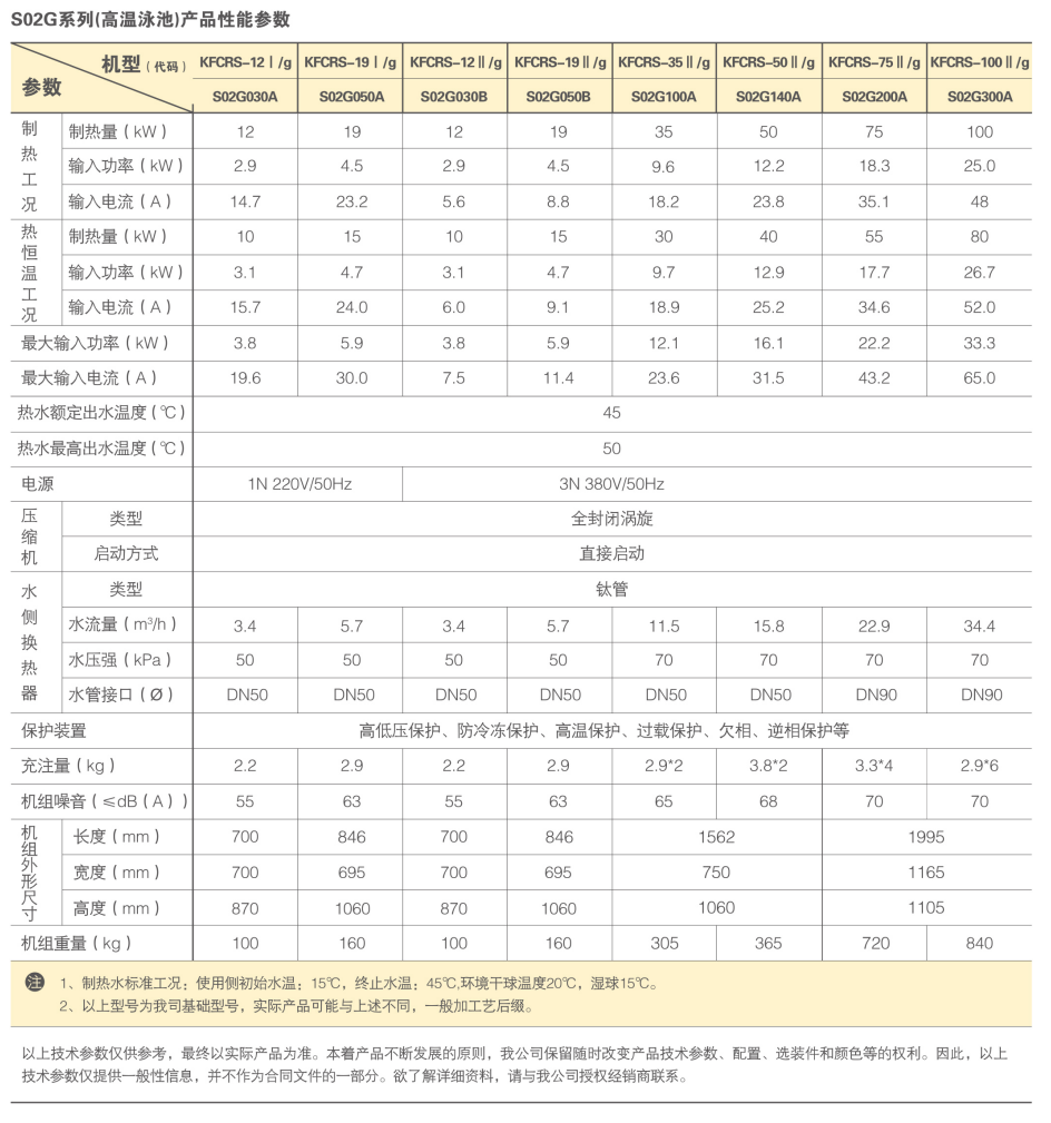 产品名称:空气能泳池热泵热水机组S02H(恒温泳池)/S02G(高温泳池)